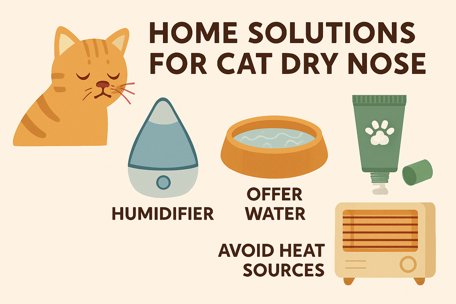 Try using a humidifier in rooms where your cat sleeps, especially if the air feels dry during winter. Shoot for indoor humidity around 40–50%—it helps keep their skin and nose from drying out.